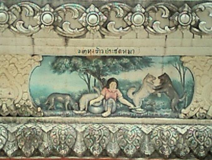 | Keywords: 0009อย่าประชดหมา.JPG อย่าหุงข้าวประชดหมา -- Illustrated Proverb Don't fix food to spite dog Phra That Phanom chedi Amphoe That Phanom Nakhon Phanom Province northeastern Thailand 2004-06-21 Pawyi Lee Public domain Reliefs in Thailand Wat Phra Tat Phanom Paintings of dogs Feeding dogs Thai proverbs |