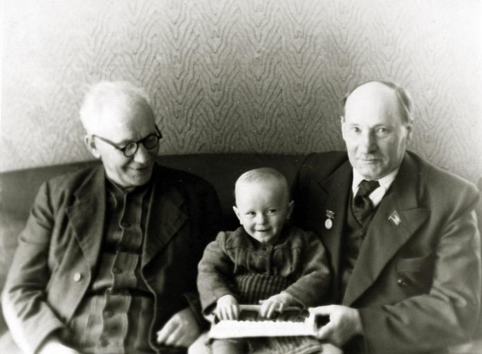 Keywords: КФ-001085.jpg be Янка аў і Якуб Колас з пе шым агульным унукам Фота каля 1947 года 1947 own Gruszecki other versions PD-Belarus Uploaded with UploadWizard Yakub Kolas Janka Maŭr