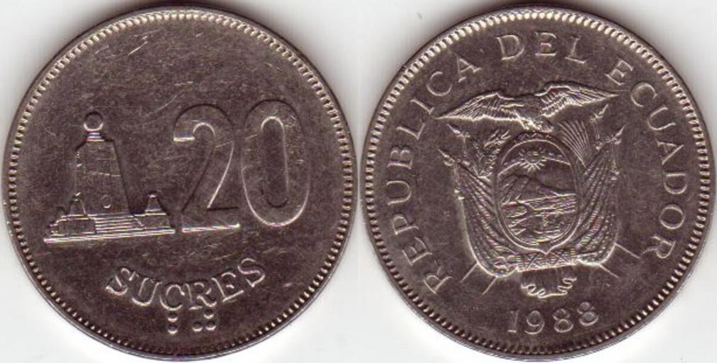 Keywords: 0020+Sucres+Ecuador+1988.jpg Ecuadorian 20 Sucres coin own Scan 9 7 2006 Scanned by Ma_xyz Public Domain Coins of Ecuador