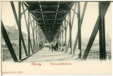 | Keywords: 00895-Aussig-1898-Nordwestbahnbrücke mit Pferdefuhrwerk-Brück & Sohn Kunstverlag.jpg Aussig; Nordwestbahnbrücke mit Pferdefuhrwerk Brück Sohn 00895 yes 1898 own Brück Sohn Kunstverlag Meißen cc-zero Bridges in Ústí nad Labem Carriages in the Czech Republic Churches in Ústí nad Labem Horses of the Czech Republic Větruše restaurant Elbe in the Czech Republic 1898 postcards of Ústí nad Labem Region 1898 postcards published by Brück Sohn Postcards of Ústí nad Labem published by Brück Sohn Images from Brück Sohn Uploaded with VicuñaUploader |