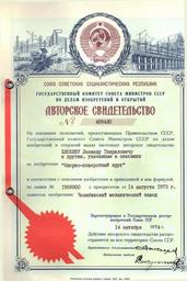 Keywords: Свидетельство 010007.jpg ru Авто ское свидетельство Опо но-повто ный к уг 1974 2014-09-10 01 51 53 own Dergalev PD-RU-exempt Insignia cc-by-sa-4 0 Invention author s certificate
