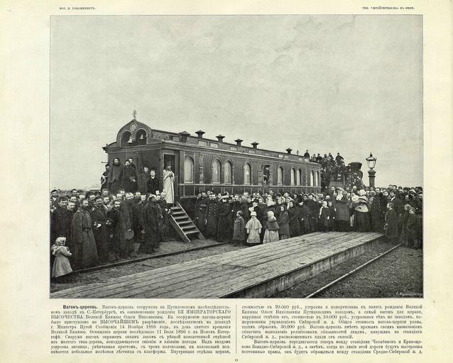 | Keywords: 012 Вагон-церковь.jpg ru Альбом «Великий путь Виды Сиби и и Великой сиби ской железной до оги» 1899 1899 flickr photos by I R Tomaskiewicz comments by V A I-v Custom license marker 2014 04 08 PD-RusEmpire PD-old Great Path - Views of Siberia and Great Siberian Railway Uploaded with UploadWizard |