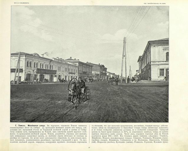 | Keywords: 027 Томск Миллионная улица.jpg ru Альбом «Великий путь Виды Сиби и и Великой сиби ской железной до оги» 1899 en «Great Path - Views of Siberia and Great Siberian Railway» book 1899 1899 flickr photos by I R Tomaskiewicz comments by V A I-v Custom license marker 2014 04 08 PD-RusEmpire PD-old Great Path - Views of Siberia and Great Siberian Railway Uploaded with UploadWizard | ||||