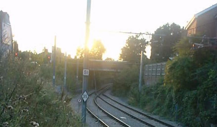 Keywords: 028139 tramlink mitcham.jpg gauntlet track on Tramlink in Mitcham London TQ 272 681 Mitcham railway station London Mitcham tram stop looking towards the bridge carrying London Road over the tram line An example of The upper picture is from The picture on the right is looking north from the bridge There has been a railway of some sort at this point since 1803 although not continuously the Surrey Iron Railway having been at a higher level than the present tramway In 1967 the wall on the right which dates from the construction of the Wimbledon Croydon Railway was in danger of collapse and was shored up initially with timber baulks later with massive concrete buttresses When Tramlink was constructed rather than go to the expense of rebuilding the wall the planners opted to use gauntlet track for this section own since 1803 user RHaworth thumb RHaworth Tramlink in the London Borough of Merton Tramlink tracks Gauntlet tracks Images by Roger W Haworth |