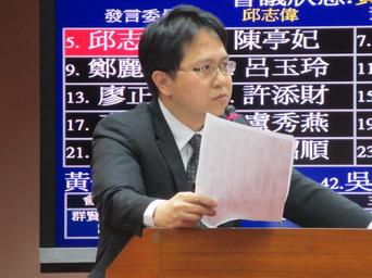| Keywords: 文化部長龍應台和陸委會主委王郁琦接受質詢 02.jpg zh-tw 台灣 野黨民 黨立委邱志偉(美 之音張永泰拍 ) 2014-01-08 10 21 01 http //www voachinese com/a/reactions-on-cross-strait-media-meetingcontroversy-20140109/1826378 html 張永泰 other versions Custom license marker 2016 08 06 PD-USGov-VOA 8th Legislative Yuan January 2014 Chiu Chih-wei |