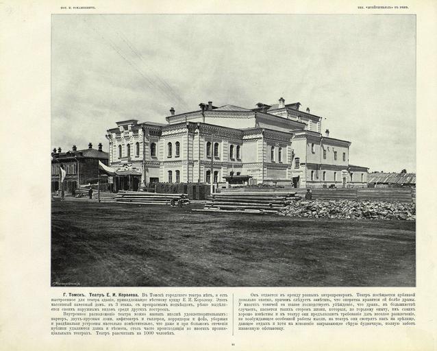 | Keywords: 044 Томск Театр ЕИ Королева.jpg ru Альбом «Великий путь Виды Сиби и и Великой сиби ской железной до оги» 1899 en «Great Path - Views of Siberia and Great Siberian Railway» book 1899 1899 flickr photos by I R Tomaskiewicz comments by V A I-v Custom license marker 2014 04 08 PD-RusEmpire PD-old Great Path - Views of Siberia and Great Siberian Railway Uploaded with UploadWizard | ||||