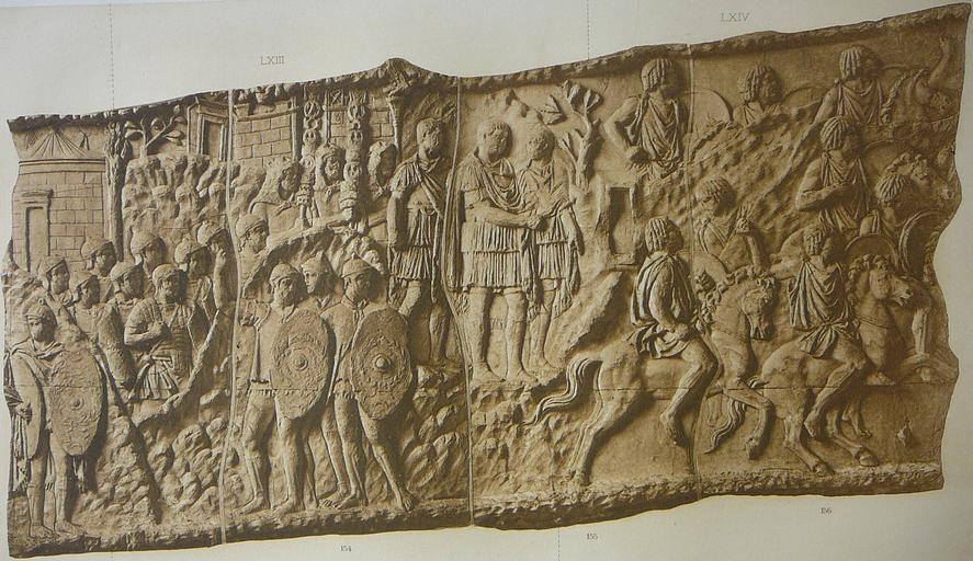 | Keywords: 044 Conrad Cichorius, Die Reliefs der Traianssäule, Tafel XLIV.jpg attributed to Graphics Die Reliefs der Traianssäule nach Conrad Cichorius Tafel XLIV Vormarsch im Gebirge Szene LXIII ; Streifscharen leichter Kavallerie Szene LXIV The Reliefs of Trajan's Column by Conrad Cichorius Plate number XLIV Advance into the mountains Scene LXIII ; Light cavalry flying columns Scene LXIV Sculpture AD 113 ; Graphics 1896 Sculpture bas-relief; Graphics monochrome graphics based on photographs Sculpture Institution Trajan's Column object history credit line accession number Conrad Cichorius Die Reliefs der Traianssäule Erster Tafelband Die Reliefs des Ersten Dakischen Krieges Tafeln 1-57 Verlag von Georg Reimer Berlin 1896 other versions 1932 Trajan's Column - Cichorius Plates |