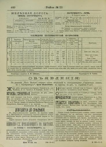 Keywords: Источник: Электронная библиотека Белинки. Екатеринбургская неделя. 1887. № 22 Дата публикации: 7-Июн-1887 URI: <a href="http://elib.uraic.ru/handle/123456789/5065" rel="nofollow">elib.uraic.ru/handle/123456789/5065</a> Располагается в коллекциях:Екатеринбургская неделя june 1887 oldnewspaper июнь стараягазета екатеринбургскаянеделя