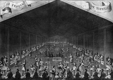 | Keywords: 04 Chardin Royal banquet in Tbilisi.jpg ka სტუმრებისათვის გამართული სადილი ვახტა გ V-ის შაჰ ავაზის სასახლეში თბილისში ჟა შარდე ის ალბ მიდა en Royal banquet at the court of the Georgian king Vakhtang V Shah-Nawaz in Tbilisi From the travelogue of the French merchant Jean Chardin<br/> Rare antique print copper engraving of a Georgian wedding wedding of Tbilisi from the Dutch publication of 'Journal du voyage de Chevalier Chardin' Chardijn in Perse aux Indes Orientales Travels of Sir John into Persia and the Orient an account of the travels of Sir John Chardin in 4 volumes http //www iscra nl/U2257 jpg www iscra nl creator Jean Chardin 1687 100px Source http //www iscra nl/u2257 wedding_of_tbilis georgia htm ISCRA Antique maps and topographical antique prints from the Netherlands PD-old-100 Tbilisi in art Banquets in art Jean Chardin Nobility of Georgia Tbilisi in the 17th century |