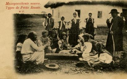 | Keywords: Малороссийские типы 051.jpg До еволюционная отк ытка Российской импе ии из се ии « ало оссийские типы» http //yarodom livejournal com/278874 html http //fotki yandex ru/users/koziuck-vladimir/album/114620/ 2010-08-31 not specified PD-RusEmpire People of the Russian Empire on postcards National costumes of Ukraine on postcards People of Little Russia Photographs uploaded by Andrew Butko from various sources Peasant lunch Meals in Russia | ||||