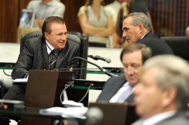 Keywords: Deputados Nereu Moura (PMDB) e Mauro Moraes (PSDB) durante a primeira sessão ordinária de 2012. Foto: Sandro Nascimento/Alep (crédito obrigatório)