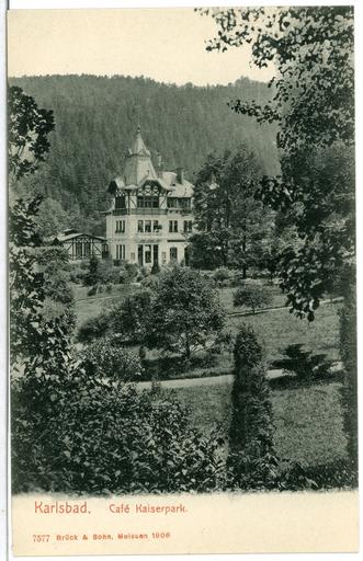 | Keywords: 07577-Karlsbad-1906-Cafe Kaiserpark-Brück & Sohn Kunstverlag.jpg Karlsbad; Cafe Kaiserpark Brück Sohn 07577 yes 1906 own Brück Sohn Kunstverlag Meißen cc-zero Cafés in the Czech Republic Buildings in Karlovy Vary 1906 postcards of Karlovy Vary Region 1906 postcards published by Brück Sohn Postcards of Karlovy Vary published by Brück Sohn Images from Brück Sohn Uploaded with VicuñaUploader | ||||
