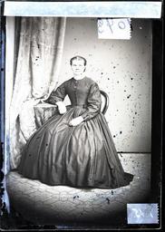 Keywords: Else Casparsen blev født i Andst den 25. april 1834 som datter af Kirsten Mortens enke af St.Anst og udlagde barnefader som hendes kæreste Casper xxxx tjenende på Nagbølle Præstegård. Ved filketællingen 1870, hvor billedet er taget, er hun tjenestepige på eg gård i Roved, Anst Sogn. |