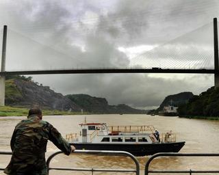 Keywords: 081130-N-9995B-001.jpg en 081130-N-9995B-001 PANAMA CANAL Panama Nov 30 2008 Chief Hospital Corpsman Edmund Reyes watches a ferry boat as canal line handlers prepare to board the high speed vessel Swift HSV 2 during a transit of the Panama Canal Swift is the primary platform for Southern Partnership Station a military to military training mission to Central America South America and the Caribbean Basin U S Navy photo by Mass Communication Specialist 1st Class Daniel Ball Released http //www navy mil/view_image asp id 67054 U S Navy photo by Mass Communication Specialist 1st Class Daniel Ball Released 2008-11-30 PD-USGov-Military-Navy Images by Alaniaris/PD uploads Ferries in Panama Aboard HSV-2 Swift Southern Partnership Station 2008 Centennial Bridge Culebra Cut |