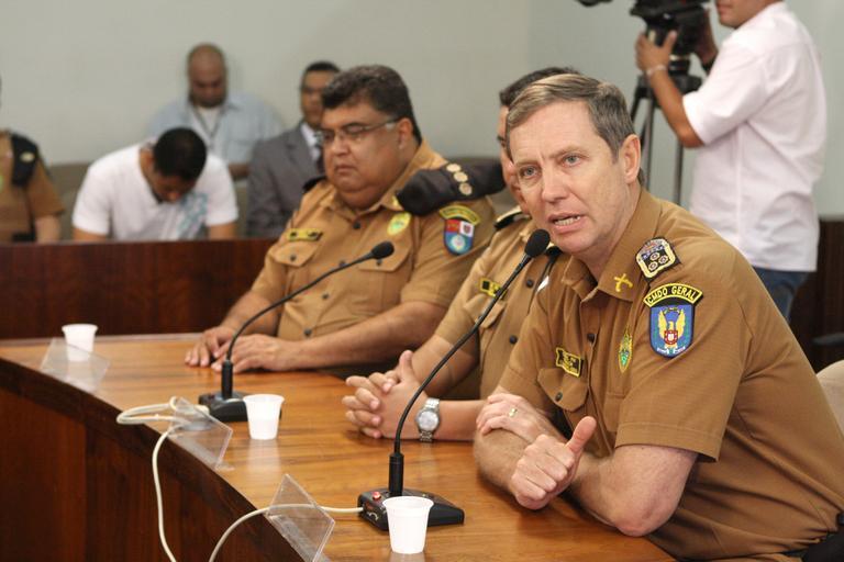 Keywords: segurança pública segurançapública people indoor Comandante-Geral da Polícia Militar do Paraná, o Coronel Roberson Luiz Bondaruk, durante reunião da Comissão de Segurança Pública da Assembleia Legislativa do Paraná. Foto: Nani Gois/Alep (crédito obrigatório) Comandante-Geral da Polícia Militar do Paraná, o Coronel Roberson Luiz Bondaruk, durante reunião da Comissão de Segurança Pública da Assembleia Legislativa do Paraná. Foto: Nani Gois/Alep (crédito obrigatório)