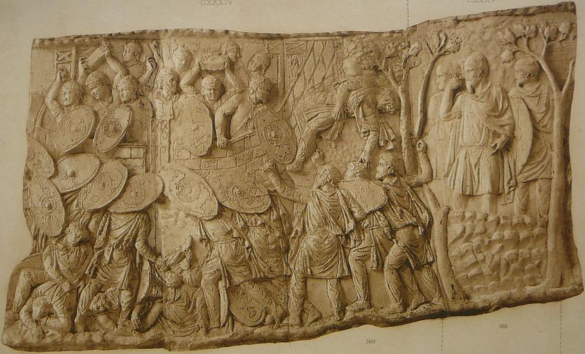 | Keywords: 099 Conrad Cichorius, Die Reliefs der Traianssäule, Tafel XCIX.jpg attributed to Graphics Die Reliefs der Traianssäule nach Conrad Cichorius Tafel XCIX Angriff auf eine römische Festung Szene CXXXIV ; Dakische Pileati im Gebirge Szene CXXXV The Reliefs of Trajan's Column by Conrad Cichorius Plate number XCIX Dacian attack on a Roman fort Scene CXXXIV ; Pileati in the mountains Scene CXXXV Sculpture AD 113 ; Graphics 1900 Sculpture bas-relief; Graphics monochrome graphics based on photographs Sculpture Institution Trajan's Column object history credit line accession number Conrad Cichorius Die Reliefs der Traianssäule Zweiter Tafelband Die Reliefs des Zweiten Dakischen Krieges Tafeln 58-113 Verlag von Georg Reimer Berlin 1900 other versions 1932 Trajan's Column - Cichorius Plates |