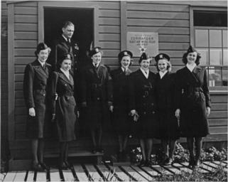 | Keywords: blackandwhite monochrome black and white This is a very informal snap of some of the nurses taken one day going out to dinner - very unofficial and unposed. Navy nurses shown with their commanding officer. Left to right: Lieutenant (junior grade) Claudia Liljegren (Nurse Corps) United States Navy, Lieutenant (junior grade) Thelma Rothsteen (Nurse Corps) United States Navy, Ensign Hazel Nyhus (Nurse Corps) United States Navy, Ensign Marcella Setzer (Nurse Corps) United States Navy, Lieutenant (junior grade) Judy Wilson (Nurse Corps) United States Navy, Lieutenant (junior grade) Elaine Gallagher (Nurse Corps) United States Navy, Ensign Patricia Riordan (Nurse Corps) United States navy. Commodore Gehres in back. [Sign behind group reads:] Quarters Commander Fleet Air Wing Four and Staff. [Scene.] [Portraits.][Women.] U.S. Naval Hospital, Attu, Alaska 06/1944; BuAer 180864; 09-5008-7 This is a very informal snap of some of the nurses taken one day going out to dinner - very unofficial and unposed. Navy nurses shown with their commanding officer. Left to right: Lieutenant (junior grade) Claudia Liljegren (Nurse Corps) United States Navy, Lieutenant (junior grade) Thelma Rothsteen (Nurse Corps) United States Navy, Ensign Hazel Nyhus (Nurse Corps) United States Navy, Ensign Marcella Setzer (Nurse Corps) United States Navy, Lieutenant (junior grade) Judy Wilson (Nurse Corps) United States Navy, Lieutenant (junior grade) Elaine Gallagher (Nurse Corps) United States Navy, Ensign Patricia Riordan (Nurse Corps) United States navy. Commodore Gehres in back. [Sign behind group reads:] Quarters Commander Fleet Air Wing Four and Staff. [Scene.] [Portraits.][Women.] U.S. Naval Hospital, Attu, Alaska 06/1944; BuAer 180864; 09-5008-7 |