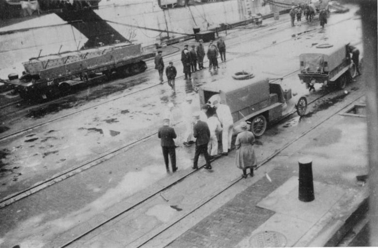 | Keywords: history hospital ship hospitalship blackandwhite monochrome road black and white 09-7911-35 USS Comfort (AH-3). Unloading wounded soldiers from USS Comfort upon its return from France to the United States, 12/1918. [Hospital ships. Transport of sick and wounded.] [Automobiles.] [World War 1.] [Scene.] WWI Photos. December 1918; NH 67707 09-7911-35 USS Comfort (AH-3). Unloading wounded soldiers from USS Comfort upon its return from France to the United States, 12/1918. [Hospital ships. Transport of sick and wounded.] [Automobiles.] [World War 1.] [Scene.] WWI Photos. December 1918; NH 67707 |