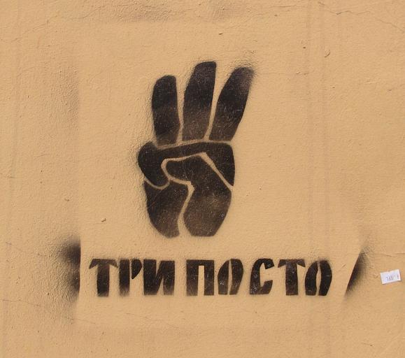 Keywords: Три по 100.jpg de Eine Graffiti-Karikatur der Allukrainischen Vereinigung »Swoboda« in Lwiw uk Г афіті-ка икату а на Всеук аїнське об'єднання «Свобода» у Львові own PavloFriend 2010-03-18 Symbols associated with Svoboda Political graffiti in Ukraine Graffiti in Ukrainian Graffiti in Lviv 3 number Graffiti of hands Stencil graffiti in Ukraine |