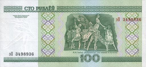 | Keywords: 100-rubles-Belarus-2011-b.jpg 100 ублей Бело уссии 2011 100 roubles of Belarus 2011 own scan 2011 National Bank of Republic of Belarus ациональный банк Республики Бела усь ацыянальны Банк Рэспублiкi Бела усь PD-BY-exempt banknotes Banknotes of Belarus 2000 Dancers on banknotes Banknotes with a face value of 100 Green banknotes |