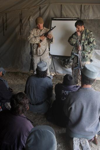 | Keywords: 101211-M-5112P-032 (5267303395).jpg U S Marine Corps Sgt Jose A Leos left with Police Advisor Team 1 Headquarters and Service Company 3rd Battalion 5th Marine Regiment Regimental Combat Team 2 teaches a basic rifle marksmanship class to Afghan Uniform Police officers at Forward Operating Base Jackson in Sangin district Helmand province Afghanistan Dec 11 2010 The battalion was one of the combat elements of Regimental Combat Team 2 whose mission was to conduct counterinsurgency operations with the International Security Assistance Forces U S Marine Corps photo by Lance Cpl Joseph M Peterson/Released https //www flickr com/photos/39955793 N07/5267303395/ 101211-M-5112P-032 2010-12-11 09 49 https //www flickr com/people/39955793 N07 U S Department of Defense Current Photos PD-USGov U S Department of Defense Current Photos https //flickr com/photos/39955793 N07/5267303395 2016-09-03 15 52 54 United States Government Work Forward Operating Base Jackson Helmand Province in the War in Afghanistan 2001-present 3rd Battalion 5th Marines Afghan Uniform Police |