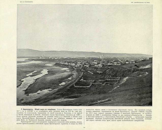 | Keywords: 104 Красноярск Общий вид с кладбища.jpg en «Great Path - Views of Siberia and Great Siberian Railway» book 1899 ru Альбом «Великий путь Виды Сиби и и Великой сиби ской железной до оги» 1899 1899 flickr photos by I R Tomaskiewicz comments by V A I-v Custom license marker 2014 04 08 PD-RusEmpire PD-old Great Path - Views of Siberia and Great Siberian Railway Uploaded with UploadWizard | ||||