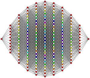 | Keywords: 10-cube column graph.svg 10-hypercube 10-cube graph This hypercube graph is an orthogonal projection This oriented projection shows columns of vertices positioned a vertex-edge-vertex distance from one vertex on the left to one vertex on the right and edges attaching adjacent columns of vertices The number of vertices in each column represents rows in Pascal's triangle being 1 10 45 120 210 252 210 120 45 10 1 in the case of this 10-cube Note Starting with the tesseract the orthogonal projection shows vertices overlapping The counts of vertices at each 2d location are represented by colors red orange yellow green etc own Geoff Richards Qef 2008-07-23 Old bitmap version en Image 10-cube_column_graph gif Source code See en User Qef/Orthographic hypercube diagrams Qef Hypercube graphs 2-fold rotational symmetry Geometry images with dihedral symmetry 02 |