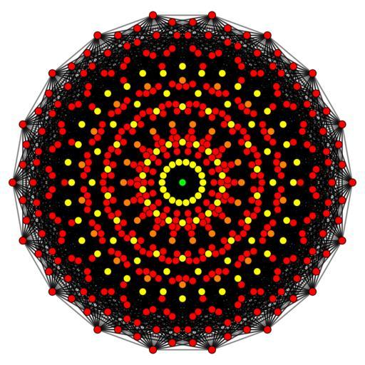 MAKE A MEME View Large Image 10-cube t7 B9.svg 10-cube family graph orthographic projection in a Coxeter plane own 2011-04-19 User Tomruen Set of colored Coxeter plane graphs; many vertices