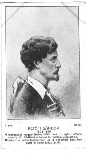 | Keywords: 10. Petőfi Sándor.jpg hu A felvétel szkennelés 2012 június 7 én készült A képeslapsorozat korábbi tulajdonosa Bálint János Ócsa volt Az I sor 1 sz 1 sorozat 100 szám jelzetű képeslapok a 101 jelzetű füst albumot töltötték meg A képeslap sorozat képeit az 1920 as években adták ki Az ismeretlen szerző halála óta több mint 70 év telt el A képeslapok hátoldalán ex libris A sorozat képei 1 sz Gróf Széchenyi István 1791 1860 2 sz Deák Ferenc 1803 1876 2 sz 3 sz 4 sz 5 sz 6 sz 7 sz Felsőbükki Nagy Pál 1777 1857 8 sz Báró Eötvös József 1813 1871 9 sz Kossuth Lajos 1802 1894 10 sz Petőfi Sándor 1823 1849 11 sz Liszt Ferenc 1811 1886 12 sz Batthányy Lajos gróf 1806 1849 13 sz II Lajos 1506 1526 14 sz Munkácsy Mihály 1844 1900 15 sz Tisza Kálmán gróf 1830 1902 16 sz Mátyás király 1440 1490 17 sz Arany János 1817 1882 18 sz Tisza István gróf 1865 1918 19 sz Kölcsey Ferenc 1790 1838 20 sz Szinyei Merse Pál 1845 1920 21 sz Jókai Mór 1825 1904 22 sz Mikszáth Kálmán 1849 1910 23 sz Vörösmarty Mihály 1800 1855 24 sz Fadrusz János 1858 1903 25 sz Árpád a Honalapító 26 sz Szent István 975 -1038 27 sz Szent László 1040 - 1095 28 sz Könyves Kálmán 1070 1116 29 sz II Endre 1205 1235 30 sz IV Béla 1206 1270 31 sz Nagy Lajos 32 sz Hunyadi János 33 sz II Rákóczi Ferenc 34 sz Vak Bottyán 35 sz III Károly 36 sz II József 37 sz Madách Imre 38 sz Katona József 39 sz Csokonai Vitéz Mihály 40 sz Lotz Károly 41 sz Pöltenberg Ernő 42 sz Török Ignác 43 sz 44 sz 45 sz 46 sz 47 sz Aulich Lajos 48 sz Damjanich János 49 sz Dessewffy Arisztid 50 sz Lázár Vilmos 51 sz Kiss Ernő 52 sz Sweidel József 53 sz Vécsey Károly 54 sz Táncsics Mihály 55 sz Tompa Mihály 56 sz Rottenbiller Lipót 57 sz Szent Gellért 58 sz Szent Imre 59 sz Kapisztrán János 60 sz Kinizsi Pál 61 sz Tomori Pál 62 sz Zrinyi Miklós 63 sz Gábor Áron 64 sz Bem József 65 sz Bocskay István 66 sz Bethlen Gábor 67 sz József nádor 68 sz Kisfaludy Károly 69 sz Berzsenyi Dániel 70 sz Fáy András 71 sz Semmelweis Ignác 72 sz Egressy Gábor 73 sz Erkel Ferenc 74 sz Szilágyi Dezső 75 sz báró Bánffy Dezső 76 sz Ujházi Ede 77 sz Baross Gábor 78 sz id Wekerle Sándor 79 sz Justh Gyula 80 sz Prohászka Ottokár 81 sz Reményi Ede 82 sz Vámbéry Ármin 83 sz Rákosi Jenő 84 sz Eötvös Károly 85 sz Benczur Gyula 86 sz Blaha Lujza 87 sz Jászai Mari 88 sz Gárdonyi Géza 89 sz Ady Endre 90 sz Gyóni Géza 91 sz Báthori Zsigmond 92 sz Pázmány Péter 93 sz Kisfaludy Sándor 94 sz Goldmark Károly 95 sz Ferenc József 96 sz Erzsébet 97 sz Hermann Ottó 98 sz Lechner Ödön 99 sz Pósa Lajos 100 sz Móra Ferenc 101 jelzet füst album A felvétel és az egész sorozat képei megjelentek Creative Commons alatt a Metapolisz DVD sorozatban 2012-06-07 saját tulajdon author Custom license marker 2012 06 07 PD-old Metapolisz Uploaded with UploadWizard Portraits of Sándor Petőfi |