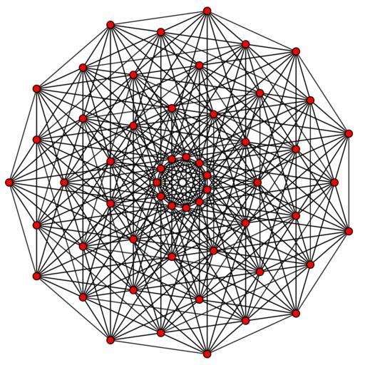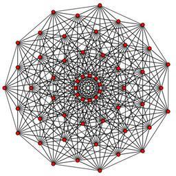 | Keywords: 10-simplex t1.svg  en en 10-simplex family polytope graph in A10 Coxeter plane own Tomruen A string-art copy was made here in Oct 2010 http //topologia wordpress com/2010/10/10/algunos-politopos-con-hilo-tensado/dsc06228/ Set of colored Coxeter plane graphs; 55 vertices |