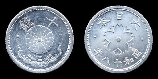 Keywords: 10sen-S18.jpg en 10sen-S18 ja 10銭アルミニウム貨幣昭和18年 Own As6673 2009-09-11 Coins in Showa era
