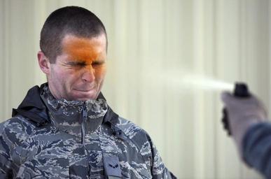 Keywords: 110105-F-9562J-187 (5343323809).jpg U S Air Force Airman 1st Class Thomas Hearton 75th Security Forces Squadron is sprayed in the face with oleoresin capsicum spray during mandatory training for all new Security Forces Airmen at Hill Air Force Base Utah Jan 5 OC Spray is a non-lethal agent that irritates the eyes causing tears and pain U S Air Force photo by Staff Sgt Brittany Jones https //www flickr com/photos/39955793 N07/5343323809/ 110105-F-9562J-187 2011-01-05 23 26 https //www flickr com/people/39955793 N07 U S Department of Defense Current Photos PD-USGov U S Department of Defense Current Photos https //flickr com/photos/39955793 N07/5343323809 2016-09-03 15 34 06 United States Government Work Pepper sprays 2011 at Hill Air Force Base |