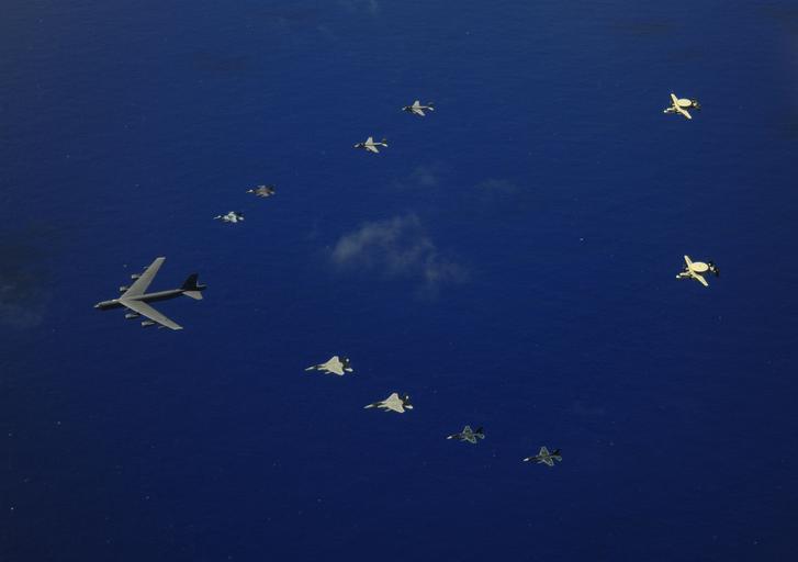 Keywords: 110221-F-HA938-671.JPG (5473399105).jpg A U S Air Force B-52 Stratofortress aircraft from the 20th Expeditionary Bomb Squadron leads a formations of two F-16 Fighting Falcon aircraft assigned to the 18th Aggressor Squadron an F-16CJ Fighting Falcon from Misawa Japan an F-15J Eagle from Chitose Japan two Japanese Air Self-Defense Force F-2 attack fighters from the 6th Tactical Fighter Squadron two U S Navy EA-6B Prowler aircraft from the Electronic Attack Squadron an U S Navy E-2C Hawkeye and a Japanese E-2C Hawkeye aircraft on a flight over Guam during exercise Cope North Feb 21 2011 The U S Air Force and Japanese Air Self-Defense Force conduct Cope North annually at Andersen Air Force Base Guam to increase combat readiness and interoperability concentrating on coordination and evaluation of air tactics techniques and procedures U S Air Force photo by Staff Sgt Angelita M Lawrence/Released https //www flickr com/photos/39955793 N07/5473399105/ 110221-F-HA938-671 JPG 2011-02-21 01 13 https //www flickr com/people/39955793 N07 U S Department of Defense Current Photos PD-USGov U S Department of Defense Current Photos https //flickr com/photos/39955793 N07/5473399105 2016-09-03 15 11 08 United States Government Work 1st Combat Camera Squadron Andersen Air Force Base Cope North |