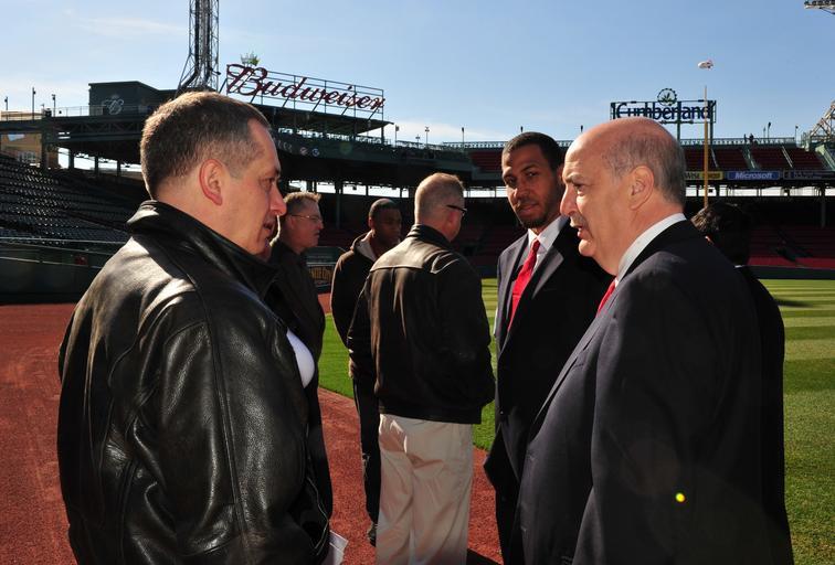| Keywords: navy band navyband national anthem nationalanthem god bless america godblessamerica star spangled banner starspangledbanner outdoor 110408-N-0773H-013 BOSTON, MA (April 8, 2011) Senior Chief Musician Jim Armstrong, left, discusses the march on of the Ceremonial Band with an official from the Boston Red Sox, right, at Boston's Fenway Park in preparation for Opening Day for the Boston Red Sox. The band will perform the "Star Spangled Banner" for the Red Sox home opener. (U.S. Navy Photo by MUC Stephen Hassay/Released) 110408-N-0773H-013 BOSTON, MA (April 8, 2011) Senior Chief Musician Jim Armstrong, left, discusses the march on of the Ceremonial Band with an official from the Boston Red Sox, right, at Boston's Fenway Park in preparation for Opening Day for the Boston Red Sox. The band will perform the "Star Spangled Banner" for the Red Sox home opener. (U.S. Navy Photo by MUC Stephen Hassay/Released) |