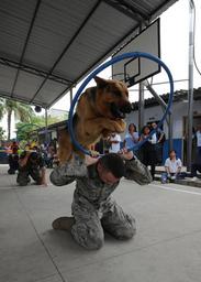 | Keywords: 110519-N-NY820-347 (5759226614).jpg U S Air Force Airman 1st Class Bradley Prouty front participates in a performance by the Ecuadorian Police Department K-9 unit in Manta Ecuador May 19 2011 as part of a community relations event in support of Continuing Promise 2011 CP 11 CP11 was a regularly scheduled mission to countries in Central and South America and the Caribbean where the U S Navy and its partnering nations work with host nations and a variety of governmental and nongovernmental agencies to train in civil-military operations https //www flickr com/photos/39955793 N07/5759226614/ 110519-N-NY820-347 2011-05-19 11 20 https //www flickr com/people/39955793 N07 U S Department of Defense Current Photos PD-USGov U S Department of Defense Current Photos https //flickr com/photos/39955793 N07/5759226614 2016-09-03 14 33 39 United States Government Work Continuing Promise 2011 United States Department of Defense |