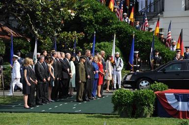 | Keywords: white house whitehouse president chancellor obama merkel germany ceremonial navy band navyband navy ceremonial band navyceremonialband outdoor 110607-N-HG258-070 WASHINGTON, D.C. (June 7, 2011) Dignitaries await President Barack Obama and Chancellor Angela Merkel of Germany prior to the arrival ceremony welcoming the chancellor of the Federal Republic of Germany, Angela Merkel. Military arrival ceremonies for visiting dignitaries have been held on the south lawn of the White House since the Kennedy administration. (U.S. Navy Photo by MUC Stephen Hassay/Released) 110607-N-HG258-070 WASHINGTON, D.C. (June 7, 2011) Dignitaries await President Barack Obama and Chancellor Angela Merkel of Germany prior to the arrival ceremony welcoming the chancellor of the Federal Republic of Germany, Angela Merkel. Military arrival ceremonies for visiting dignitaries have been held on the south lawn of the White House since the Kennedy administration. (U.S. Navy Photo by MUC Stephen Hassay/Released) |