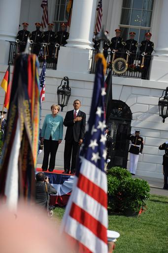 | Keywords: white house whitehouse president chancellor obama merkel germany ceremonial navy band navyband navy ceremonial band navyceremonialband 110607-N-HG258-094 WASHINGTON, D.C. (June 7, 2011) Angela Merkel, chancellor of Germany, left, and President Barack Obama, right, stand as the U.S. Navy Band playes the national anthems of Germany and the U.S. as part of the arrival ceremony welcoming the chancellor of the Federal Republic of Germany, Angela Merkel. Military arrival ceremonies for visiting dignitaries have been held on the south lawn of the White House since the Kennedy administration. (U.S. Navy Photo by MUC Stephen Hassay/Released) 110607-N-HG258-094 WASHINGTON, D.C. (June 7, 2011) Angela Merkel, chancellor of Germany, left, and President Barack Obama, right, stand as the U.S. Navy Band playes the national anthems of Germany and the U.S. as part of the arrival ceremony welcoming the chancellor of the Federal Republic of Germany, Angela Merkel. Military arrival ceremonies for visiting dignitaries have been held on the south lawn of the White House since the Kennedy administration. (U.S. Navy Photo by MUC Stephen Hassay/Released) |