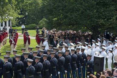| Keywords: white house whitehouse president chancellor obama merkel germany ceremonial navy band navyband navy ceremonial band navyceremonialband outdoor people crowd 110607-N-HG258-116 WASHINGTON, D.C. (June 7, 2011) Capt. Brian Walden conducts the U.S. Navy Ceremonial Band as President Barack Obama and Chancellor Angela Merkel inspect the troops during the arrival ceremony welcoming the chancellor of the Federal Republic of Germany, Angela Merkel. Military arrival ceremonies for visiting dignitaries have been held on the south lawn of the White House since the Kennedy administration. (U.S. Navy Photo by MUC Stephen Hassay/Released) 110607-N-HG258-116 WASHINGTON, D.C. (June 7, 2011) Capt. Brian Walden conducts the U.S. Navy Ceremonial Band as President Barack Obama and Chancellor Angela Merkel inspect the troops during the arrival ceremony welcoming the chancellor of the Federal Republic of Germany, Angela Merkel. Military arrival ceremonies for visiting dignitaries have been held on the south lawn of the White House since the Kennedy administration. (U.S. Navy Photo by MUC Stephen Hassay/Released) |