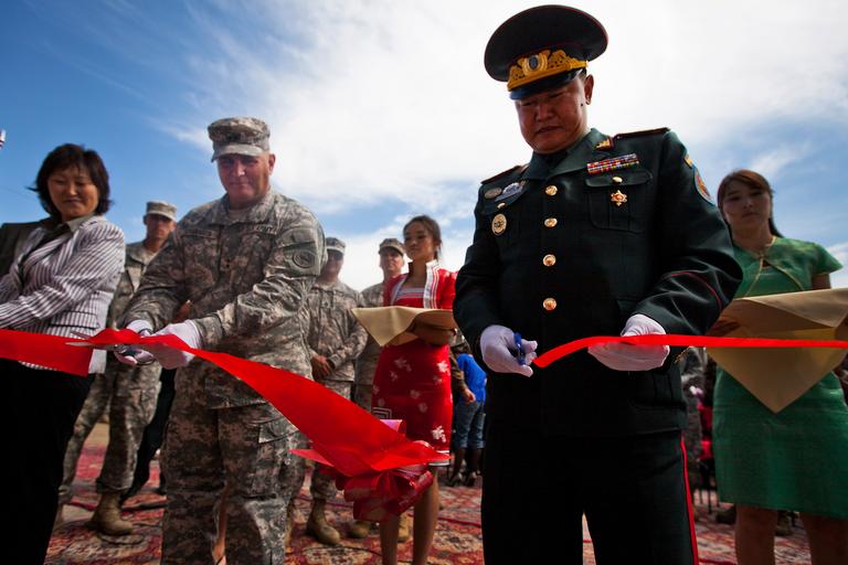 Keywords: 110811-M-IX060-013 (6035603087).jpg Mongolian Maj Gen B Bayarmagnai the deputy commanding general of the general staff of the Mongolian armed forces right and U S Army Maj Gen Joseph Chavez left the deputy commanding general for U S Army Pacific Command cut a ceremonial ribbon in front of the entrance to the Ayut Family Hospital in Ulaanbaatar Mongolia Aug 11 2011 The new medical facility was built by U S Marines Sailors and Soldiers and Mongolian armed forces construction workers as part of the engineering civic action program for Exercise Khaan Quest 2011 Khaan Quest is an annual multinational operational exercise co-sponsored by the Mongolian armed forces and U S Pacific Command that is executed by U S Army Pacific with support from the U S State Department It is designed to strengthen the capabilities of U S Mongolian and other nations ™ forces in international peace support operations worldwide DoD photo by Cpl Tyler Main U S Marine Corps/Released https //www flickr com/photos/39955793 N07/6035603087/ 110811-M-IX060-013 2000-01-01 00 01 https //www flickr com/people/39955793 N07 U S Department of Defense Current Photos PD-USGov U S Department of Defense Current Photos https //flickr com/photos/39955793 N07/6035603087 2016-09-03 13 52 21 United States Government Work United States Army soldiers Khaan Quest 2011 Ribbon-cutting ceremonies |