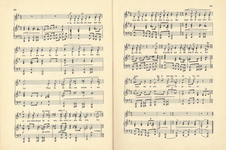 Keywords: 116 Mijn Land, pagina 164 & 165.jpg Kun je nog zingen zing dan mee Muziek en teksten origineel gepubliceerd voor 1900 own 1915 author PD-old Kun je nog zingen zing dan mee