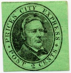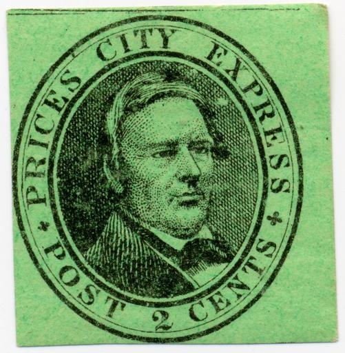 Keywords: 119L3 1858 Prices City Epress - Post 2 Cents - Green.jpg 1858 local Price's City Express 2-cent US postage stamp imperforate Scott 119L3 black on green Scanned by me from a stamp from my collection 2006-12-16 R A Nonenmacher PD-old 1858 stamps Local Stamps of the United States Local 119L3 People of the United States on stamps |