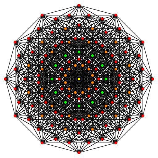 MAKE A MEME View Large Image 11-simplex t2.svg en uniform 11-polytope 11-simplex family own 2011-04-14 User Tomruen Set of colored Coxeter plane graphs red orange yellow green vertices