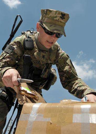 MAKE A MEME View Large Image 120410-N-3069F-029 (7109533503).jpg 120410-N-3069F-029 KABUL “ April 10 2012 Joint Visitor Bureau Personal Security Detail Team Leader MA2 Ashley Hickerson assigned to NATO Training Mission “ Afghanistan at Camp Eggers Kabul opens a box ...