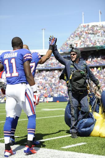 | Keywords: 120916-N-LO372-378 (7999920230).jpg A member of the U S Navy parachute demonstration team the Leap Frogs greets members of the Buffalo Bills after landing at Ralph Wilson stadium in commemoration of the Bicentennial of the War of 1812 in Buffalo N Y Sept 16 2012 This event coincides with Buffalo Navy Week 2012 one of 15 signature events planned across America in 2012 The weeklong event commemorates the bicentennial of the War of 1812 hosting service members from the U S Navy Marine Corps Coast Guard and Royal Canadian Navy U S Navy photo by Mass Communication Specialist 1st Class Elisandro T Diaz/Released https //www flickr com/photos/39955793 N07/7999920230/ 120916-N-LO372-378 2012-09-16 06 57 https //www flickr com/people/39955793 N07 U S Department of Defense Current Photos PD-USGov U S Department of Defense Current Photos https //flickr com/photos/39955793 N07/7999920230 2016-09-03 10 10 46 United States Government Work United States Department of Defense |