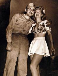Keywords: 127-GW-902-80525: Guadalcanal Campaign, August 1942-January 1943. Boy Meets Girl. Inasmuch as Marine Corporal Edward J. Grabowski, left, was on hand with his camera to take a picture of Mary Eliot, right, movie actress and one of the first women to set foot on the South Pacific jungle island at which Corporal Grabowski was serving, it was only fair that another cameraman did him the favor of showing the girls back in Benson that he what he doing. U.S. Marine Corps Photograph, now in the collections of the National Archives. (2016/09/13). 127-GW-902-80525: Guadalcanal Campaign, August 1942-January 1943. Boy Meets Girl. Inasmuch as Marine Corporal Edward J. Grabowski, left, was on hand with his camera to take a picture of Mary Eliot, right, movie actress and one of the first women to set foot on the South Pacific jungle island at which Corporal Grabowski was serving, it was only fair that another cameraman did him the favor of showing the girls back in Benson that he what he doing. U.S. Marine Corps Photograph, now in the collections of the National Archives. (2016/09/13). |