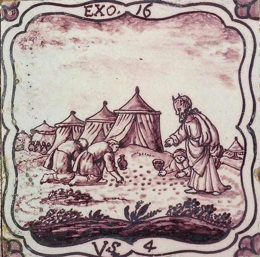 | Keywords: 1292-3-mozes-manna.jpg nl Tafereeltegel tegel van tegelveld van vier stuks twee hoog twee breed 'Mozes ziet toe hoe de Israëlieten manna verzamelen' hoekmotief kwartrozet 1760 1850 Museum Rotterdam Museum Rotterdam photograph cc-zero Uploaded with UploadWizard Manna |
