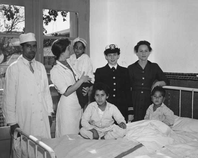 | Keywords: morocco africa nurse corps nursecorps hospital people groupshot blackandwhite monochrome black and white Nurse Corps Officers, NAS Station Hospital, visit Hospital Civil Mixte de Port Lyautey, Morocco, May 1958. [American Nurse at bedside of pediatric patients]. 12-0190-001 Nurse Corps Officers, NAS Station Hospital, visit Hospital Civil Mixte de Port Lyautey, Morocco, May 1958. [American Nurse at bedside of pediatric patients]. 12-0190-001 | ||||
