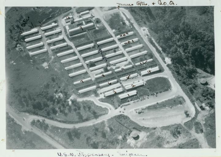 Keywords: U.S. Naval Dispensary Saipan. 1. Administration Building. 2. Personnel & Record Office. 3. Post Office. 4. Surgery, air conditioned. 5. Receiving ward. 6. Out patient. 7. New rec unit. 8. Main storeroom. 9. Mess Hall. 10. Laundry. 11. Pharmacy. 12. Lab. 13. X-ray. "0". USO 12-0205 Navy Medicine Historical Files Collection - Facilities - Saipan U.S. Naval Dispensary Saipan. 1. Administration Building. 2. Personnel & Record Office. 3. Post Office. 4. Surgery, air conditioned. 5. Receiving ward. 6. Out patient. 7. New rec unit. 8. Main storeroom. 9. Mess Hall. 10. Laundry. 11. Pharmacy. 12. Lab. 13. X-ray. "0". USO 12-0205 Navy Medicine Historical Files Collection - Facilities - Saipan |