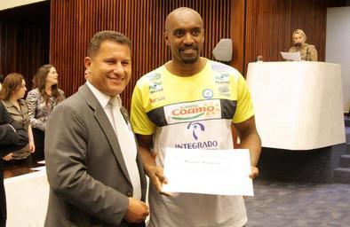 | Keywords: basquete campo mourão campomourão adelino ribeiro adelinoribeiro menção honrosa mençãohonrosa people groupshot Equipe de basquete de Campo Mourão recebe menção honrosa. Foto: Nani Gois/Alep (crédito obrigatório) Equipe de basquete de Campo Mourão recebe menção honrosa. Foto: Nani Gois/Alep (crédito obrigatório) |