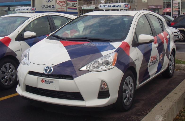 Keywords: '12 Toyota Prius c CAA Quebec Driving School.JPG 2012 Toyota Prius c CAA Quebec photographed in Pointe-Claire Quebec Canada Toyota Prius c Own 2012-10-05 Bull-Doser wikipedia en All Rights Released
